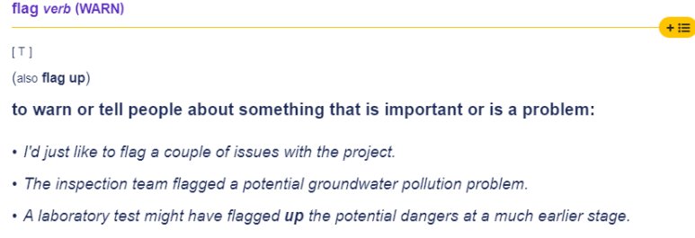 One may also flag something as "important" and requiring further attention, such as an email or message. 이메일이나 메세지에 중요하고 관심을 더 기울여야 한다고 할때 사용